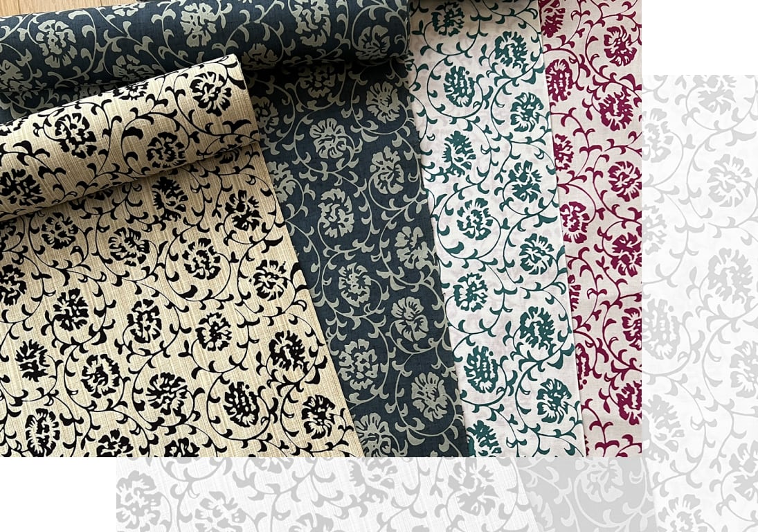 伝統的な和柄に洋の表情を加えたオリジナルの柄で