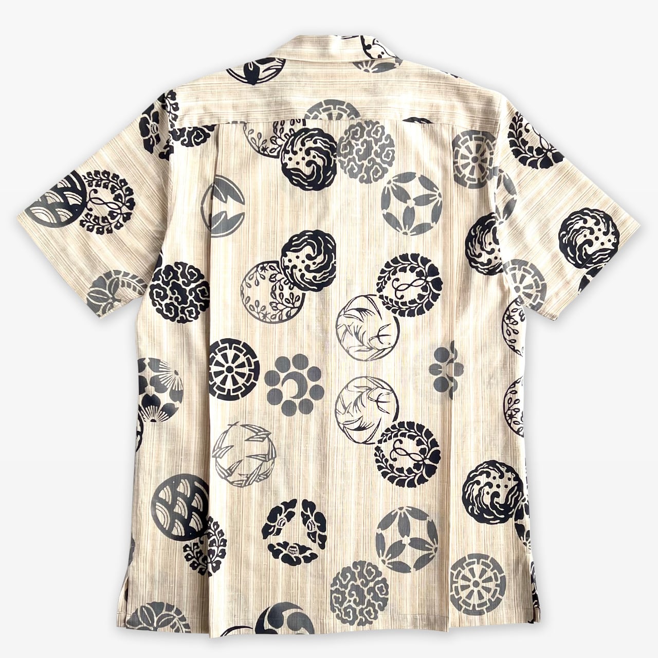 丸紋シャツ ベージュ×黒系