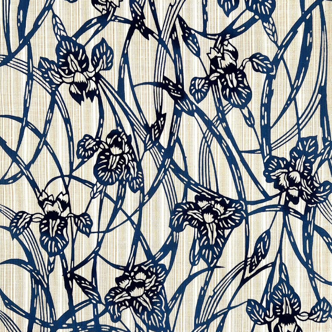 菖蒲手拭い ベージュ×青系